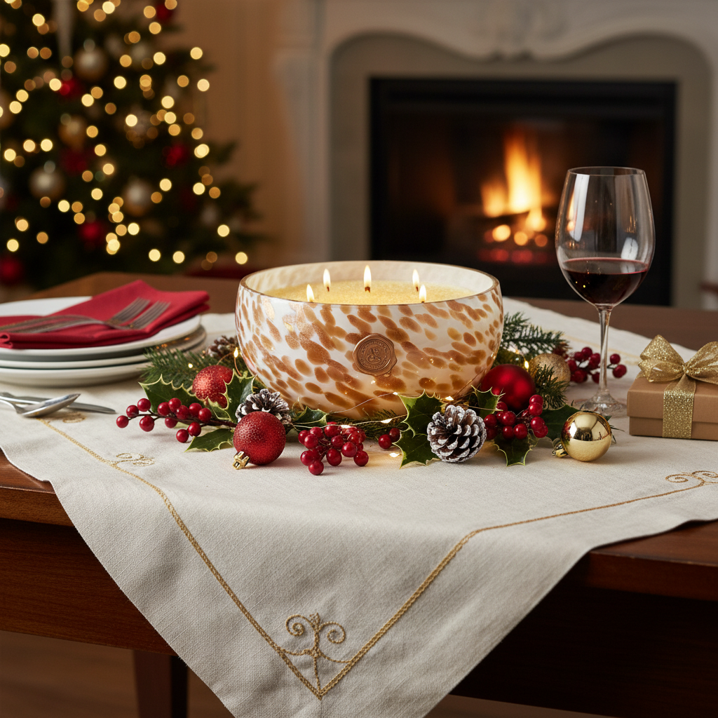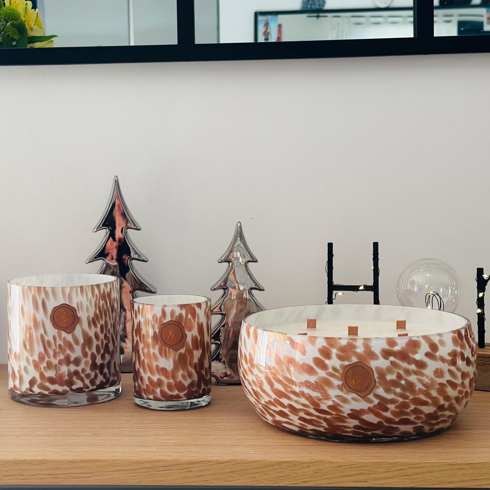 Son verre doré et pailleté évoque la magie des fêtes et l’élégance contemporaine. Chaque bougie est unique, façonnée avec soin par des artisans verriers pour sublimer votre décoration intérieure. Cette bougie placée au centre de votre table, deviendra le pièce maitresse qui apportera raffinement et élégance.