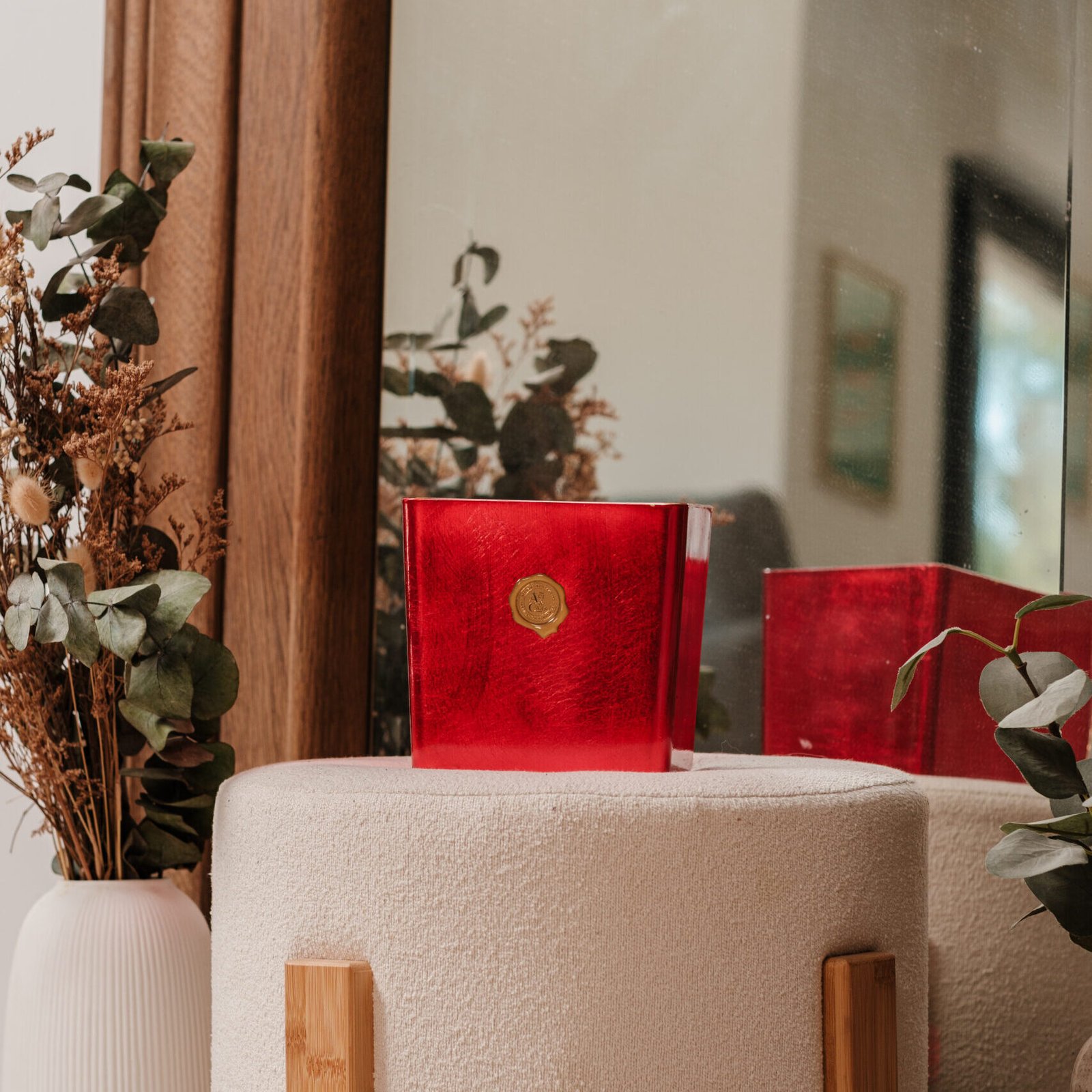 ✨ Bougie le » Carré Rouge » – Élégance & Lumière