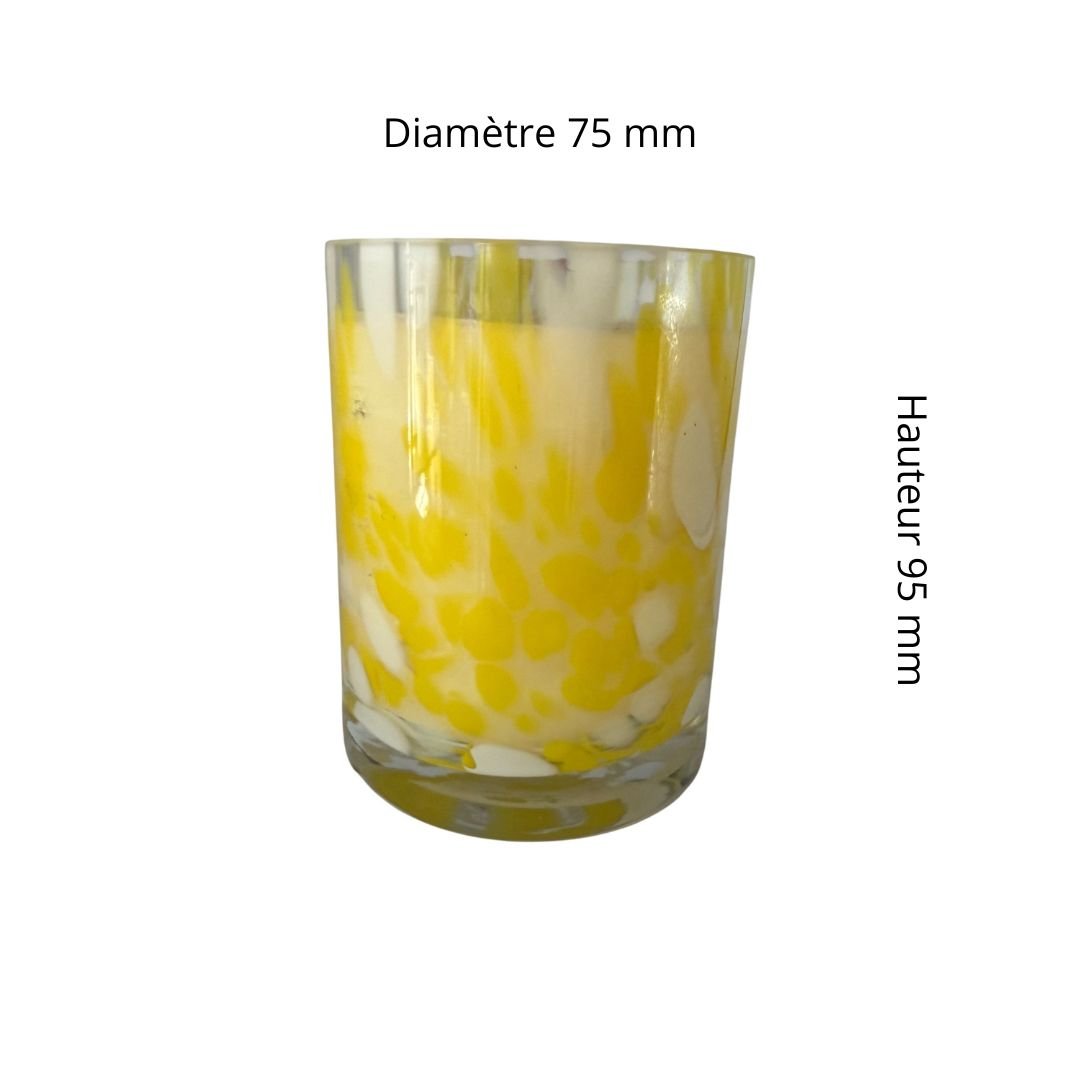 Le modèle Sunny se distingue par son verre soufflé jaune lumineux. Loin de passer inaperçue, cette bougie attire les regards et diffuse une énergie solaire unique.